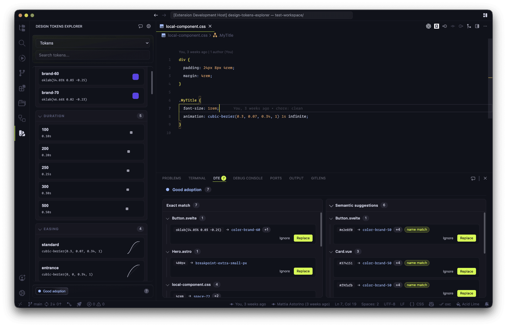 Design Tokens Explorer brings your compiled design tokens directly into Visual Studio Code, making them searchable, visualisable and instantly accessible while you code.